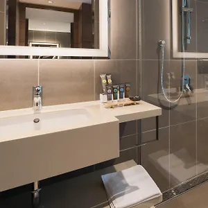 The property features a 24-hour bar and QBar restaurant serving international cuisine.